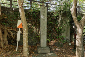 松雲寺入口に「明治天皇史蹟」碑が、境内に明治天皇御腰掛石があります。