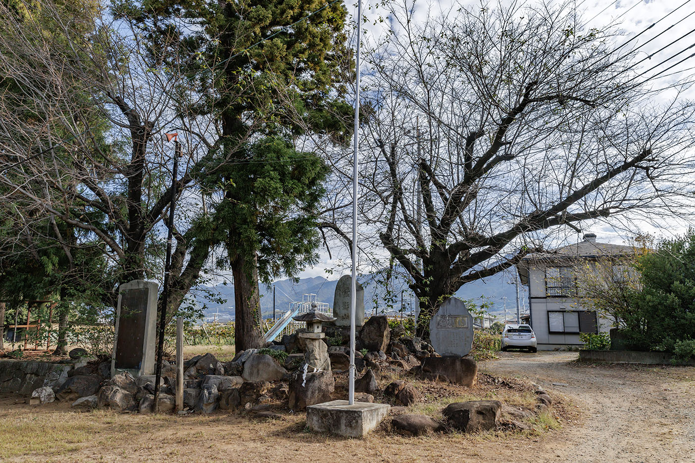 御膳水2025.11.30 陵墓探訪記 御膳水 ごぜんすい 上記地図が正常に表示されない場合 山梨県甲州市勝沼町等々力(とどろき)1571 諏訪神社 JR 勝沼ぶどう郷駅下車 徒歩40分 2025.10.29訪問 諏訪神社の拝殿右手前に「御膳水」碑があります。 1880年(明治13年)6月19日、勝沼学校にて昼食休憩。 諏訪神社拝殿 諏訪神社の大ケヤキ