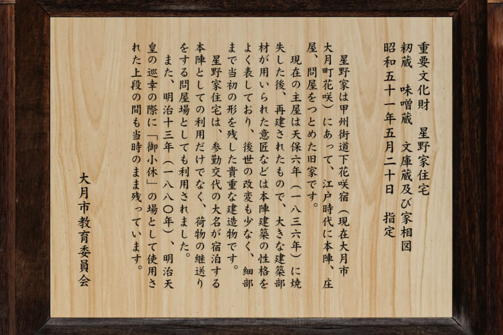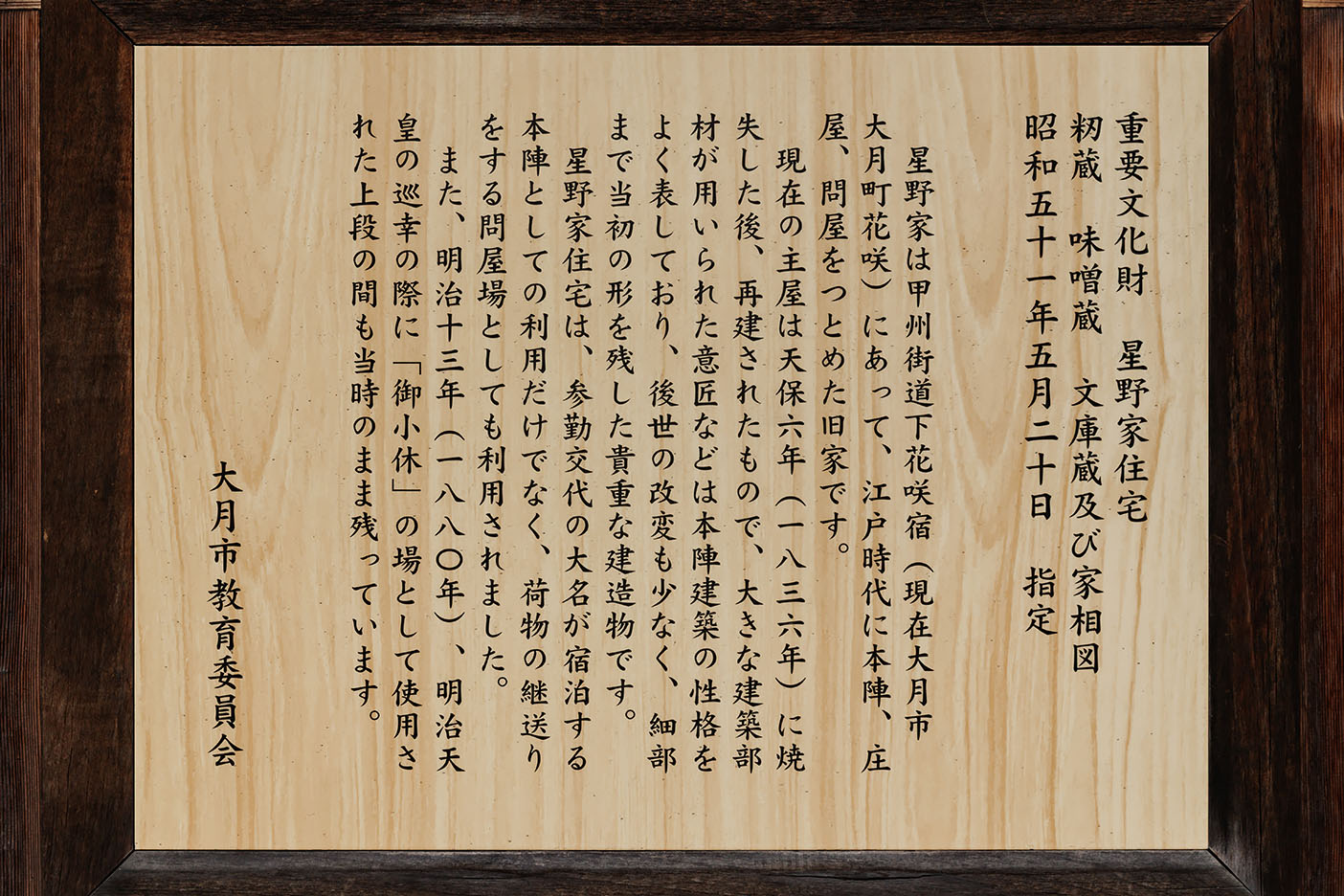 御小休所2025.12.04 陵墓探訪記 明治天皇花咲御小休所 めいじてんのうはなさきごこやすみどころ 上記地図が正常に表示されない場合 山梨県大月市大月町花咲193 旧花咲宿本陣跡 JR 富士急行 大月駅下車 徒歩18分 2025.10.29訪問 1880年(明治13年)6月18日、星野寬則宅にてご休憩。