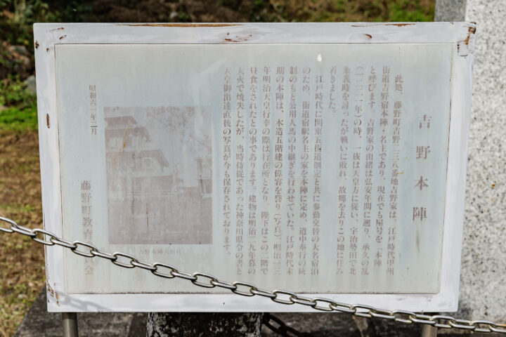 行在所2025.12.12 陵墓探訪記 聖蹟 せいせき 上記地図が正常に表示されない場合 神奈川県相模原市緑区吉野238 旧吉野宿本陣跡 JR 藤野駅下車 徒歩20分 2025.10.29訪問 1880年(明治13年)6月17日、吉野十郎宅にて昼食休憩。
